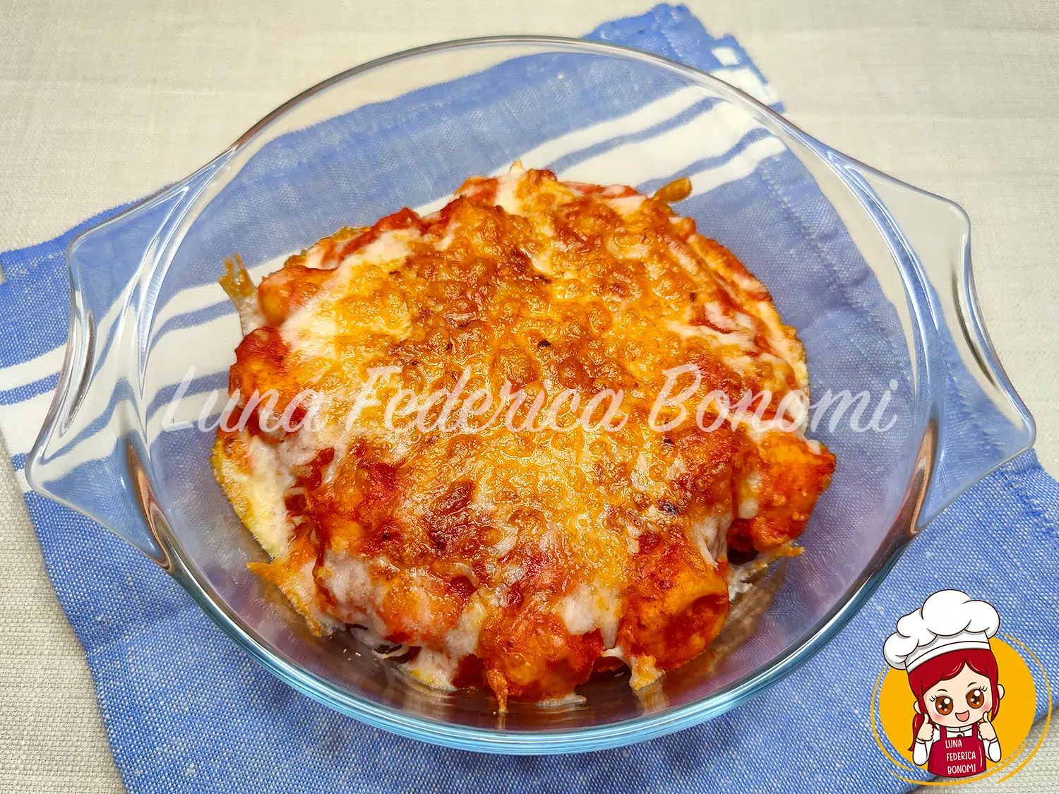Ti consiglio, per una migliore riuscita della ricetta, di fare sgocciolare benissimo la mozzarella, che altrimenti rilascia il suo siero in cottura.